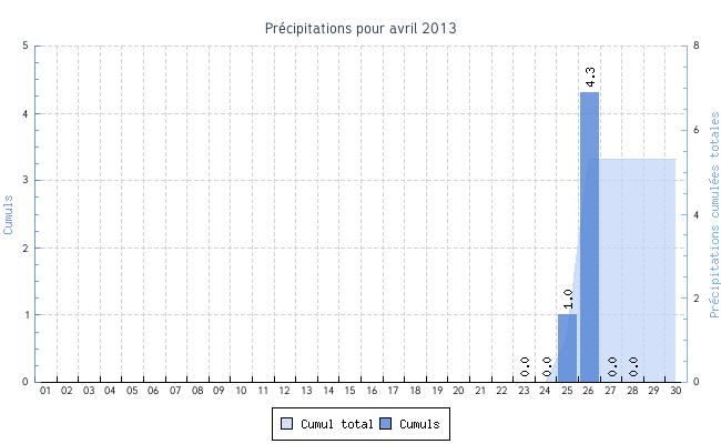 | Total | 0.0 °C | 33.3 °C | 14.5 °C | 5.8 km/h (21.2 km/h) | SSE |