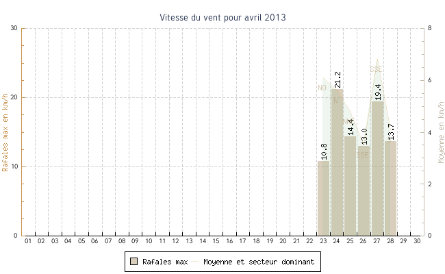 | 26 | 0.0 °C | 20.6 °C | 10.9 °C | 3.5 km/h (13.0 km/h) | SSE |